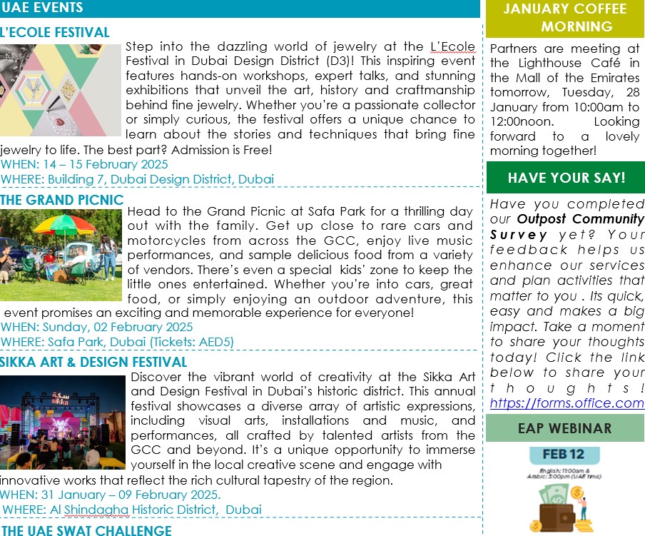 We’d love your input! Kindly take a moment to complete this short Survey and share your thoughts on Outpost services. Your responses will help us tailor our offerings and events to better align with your needs. The survey is anonymous and will remain open until 13 February 2025.